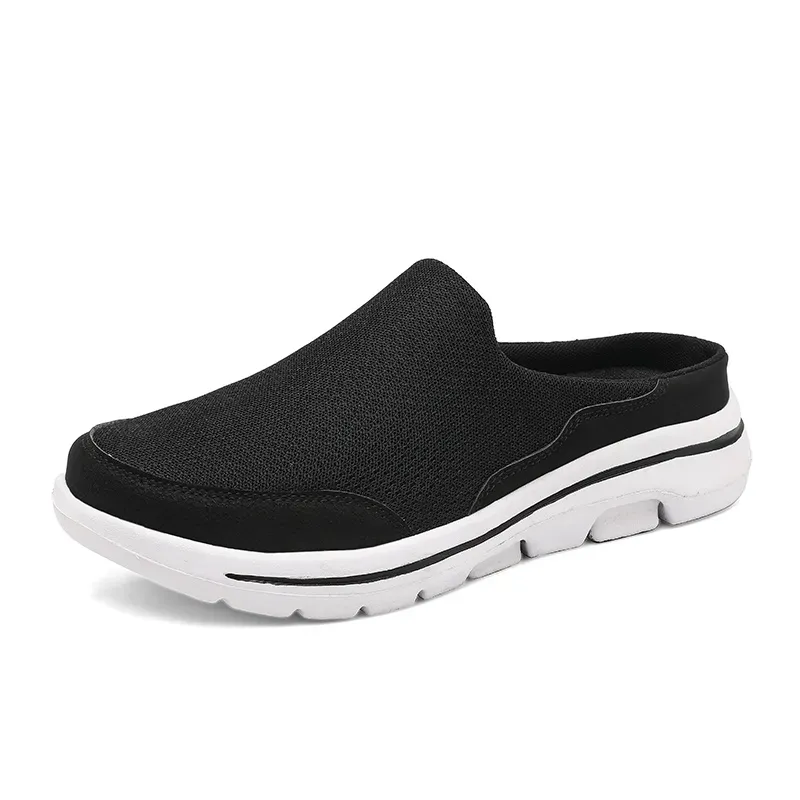Men's mesh toe half slippers are a type of footwear designed for casual wear. They typically have a breathable mesh upper that allows for ventilation and helps keep feet cool and dry. The toe of the slipper is exposed, providing a comfortable and convenient way to slide them on and off. The half design refers to the fact that the slipper does not cover the entire foot, leaving the heel exposed. These slippers may also have a flexible and durable sole for added comfort and support.