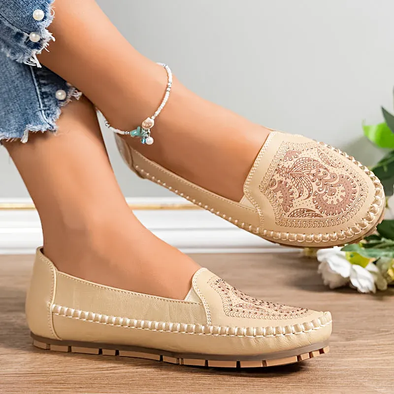 Womens Retro Crystal Flat Shoes